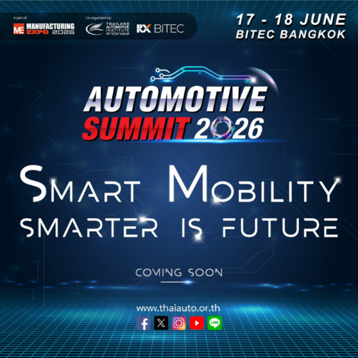 By integrating smart technology into the mobility ecosystem and automotive industry, innovation is no longer a distant concept. Join us to discover how "smart" is transforming the future of mobility at Automotive Summit 2026 is scheduled to take place on 17–18 June 2026 at Grand Hall 203 BITEC Bangkok |